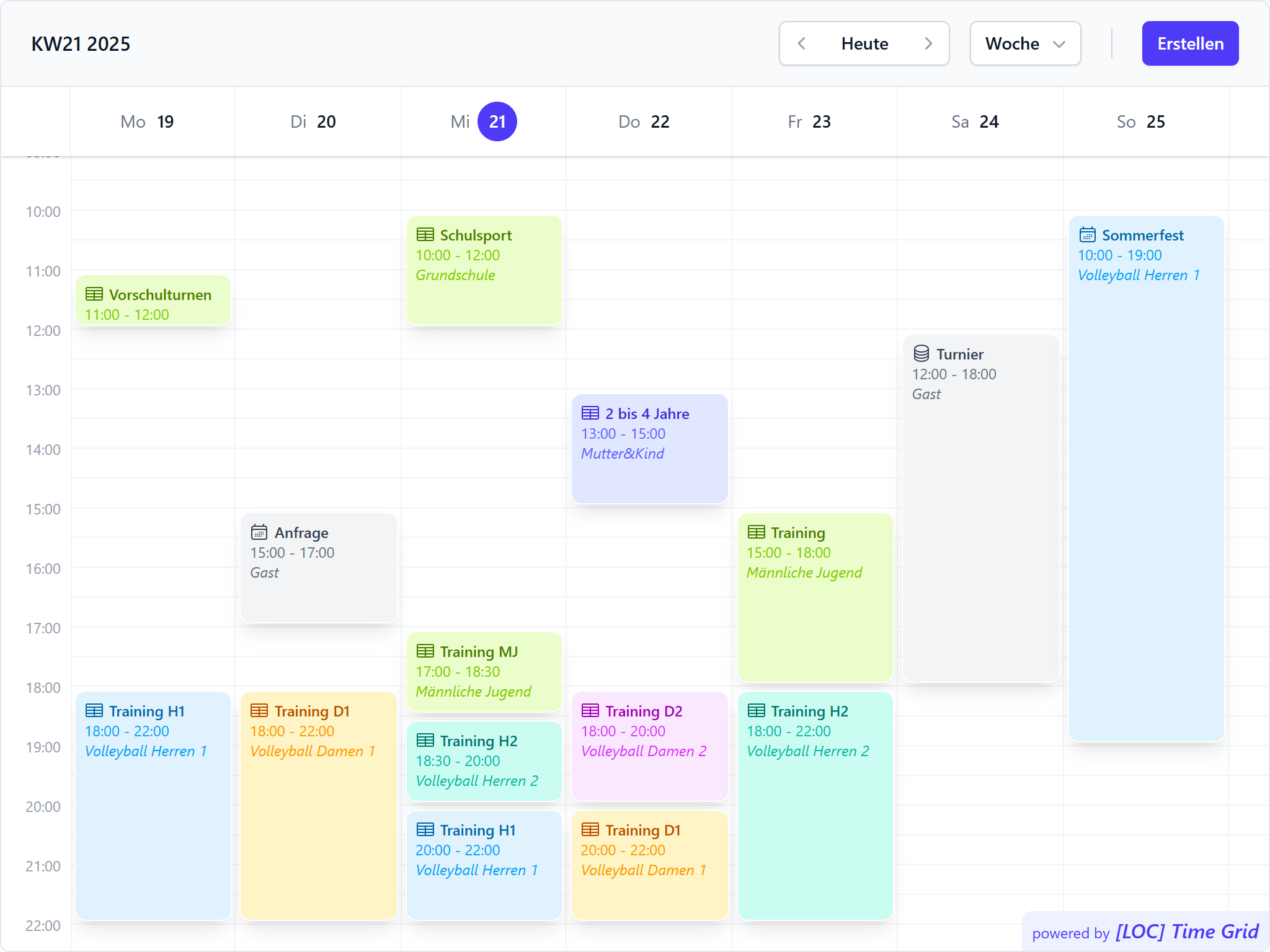 Time Grid [DEV] ist hautsächliche für Sportvereine und kleinere Unternehmen ausgelegt, die ein simples Tool für die Verwaltung ihrer Ressourcen benötigen.